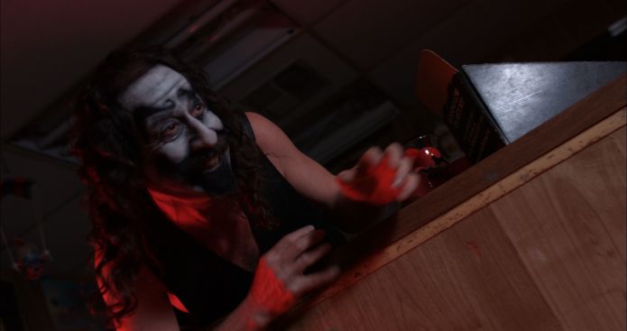 The film’s writer/director/producer, Joseph Kelly, successfully stays away from the path of nostalgia, and instead delivers a more straightforward slasher flick. Also, the colors in this film seem to hit the entire spectrum at the right times. Especially when we see the clowns on-screen.