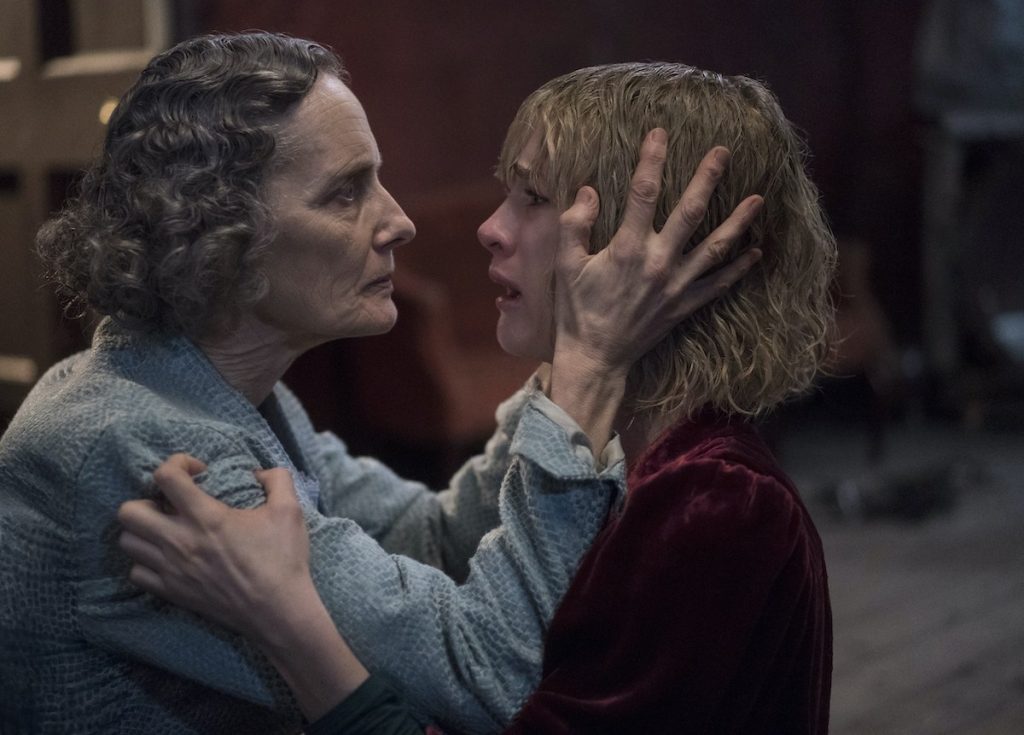 FS: Well, I wanted to set it in the 90s because I wanted to modernize the story with a fresh take. But I didn’t want to make it present day because I didn’t want technology to interfere with the isolation I wanted to put Kate through. But like you said, that era is so rich with rebellion and angst, and it was all about deconstruction, they were even designing clothing with frayed edges. And so, for me it was such a great era for Kate as well, coming in and quite exposed into this world. Seemingly she has it all together, but we know from her mother, the couple of things her mother says to her, like, “Are you sure you can handle it?” And her roommate too, expressing doubt, you get the feeling that something has happened to Kate in the past. She comes in a little bit loaded but we don’t know why. And this world that she walks into, [is her downfall]. Whether it’s the kids that are driving her there, or the house and the ghosts, it is this idea of toxic masculinity… it got its hold on Miles, and the generational abuse and the cyclical nature of abuse have opened up in her, her own darkness and it’s spiraling out. It’s her reflecting into the house.