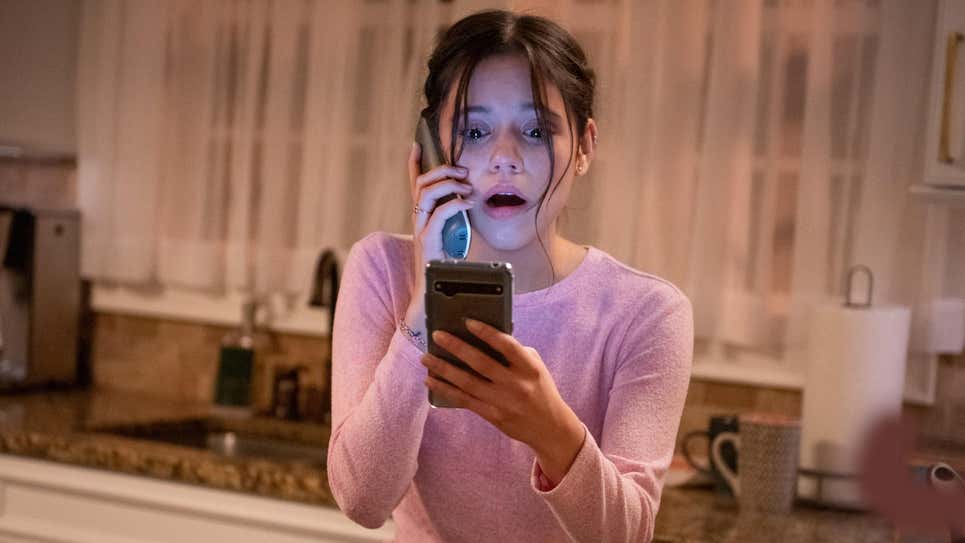 Franchise faves Gayle Weathers (Courteney Cox), Dwight “Dewey” Riley (David Arquette), Sheriff Deputy Judy Hicks (Marley Shelton), and Sidney Prescott (Neve Campbell) are back, and—unlike Jamie Lee Curtis in Halloween Kills—are not just thrown into obligatory roles. However, in keeping with Scream’s sensibilities, it is a young person’s fight to the death and the junior cast are as good as their predecessors. The main focus is on a pair of estranged sisters, Tara and Sam Carpenter (Jenna Ortega, and Melissa Berrera), who come together to fight the immortal Ghostface killer. Unlike Jason Voorhees or Michael Myers, Ghostface is a persona who remains active via different people donning his costume throughout the years, so, as the tagline implies, it could be anyone.